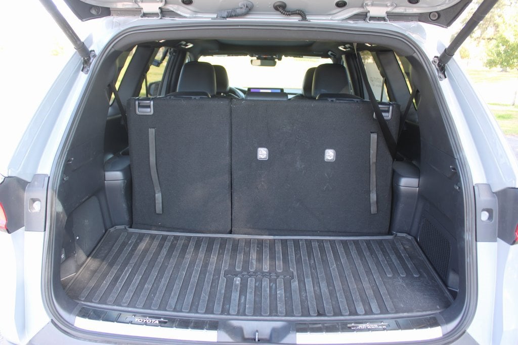 • 7-passenger seating with second-row fold-down captain's chairs and fold-down inboard armrests, adjustable headrests and two cup holders mounted on the floor and 60/40 split, fold-down third-row seats with sliding headrests and recline function