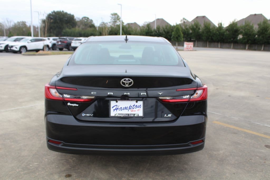 Midnight Black 2025 Toyota Camry LE FWD eCVT 2.5L 4-Cylinder 16V DOHC 2.5L 4-Cylinder 16V DOHC, Black Cloth.